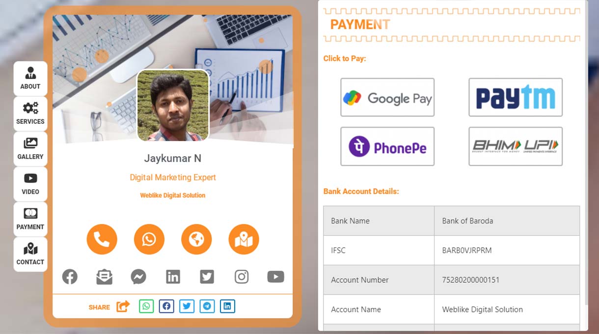 In this fast growing technology world, no more people can hold physical printed visiting cards. And today’s advanced technology helps us to share our business card to unlimited times to unlimited people!